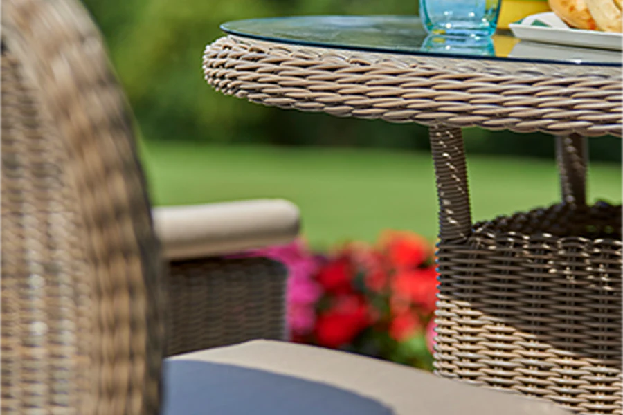 Seating 4 to 6 people, this compact dining table is ideal for gardens and patios where space is limited. The table has been designed to withstand the elements all year round, expertly handwoven using versatile weatherproof rattan in Mushroom Brown. While the tables sturdy underframe ensures maximum stability on uneven decking or patio surfaces, the safety glass tabletop is easy to clean after any rainfall or accidental spillages and features a convenient Parasol hole.