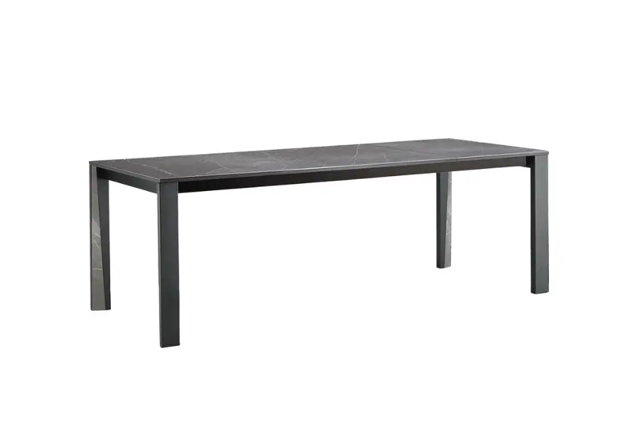 Sitting atop a lacquered metal mechanism, the stunning tabletop is available in a variety of different glossy or matte marble-effect stoneware finishes, exemplifying the craftsmanship.