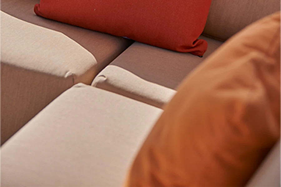 This modular garden lounging set requires a minimum space of 300cm x 300cm and includes: one modular right-hand piece, one modular left-hand piece, one modular corner piece, two modular centre pieces & one rectangular coffee table.