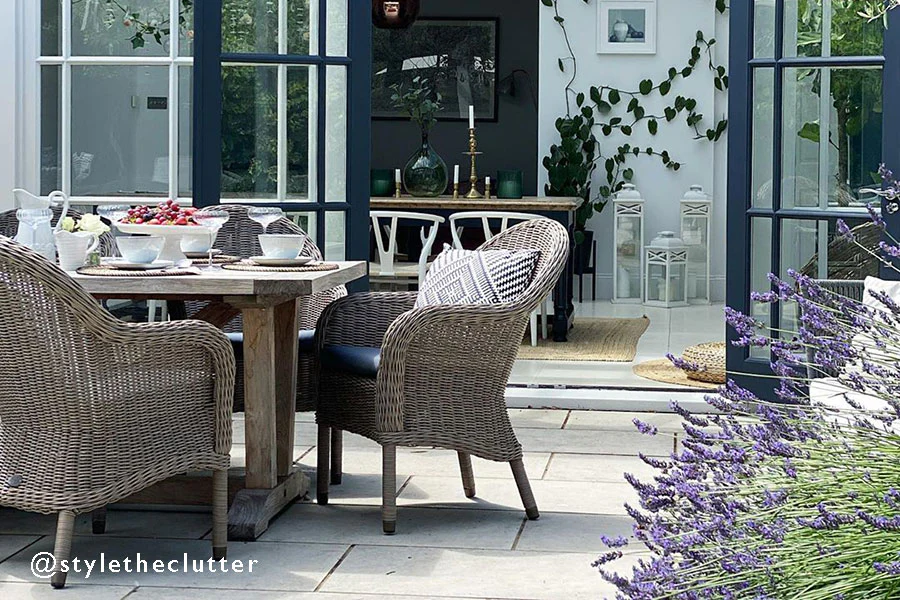 Suited to any style of garden, the square dining table and 4 dining armchairs have been beautifully handwoven using our premium waterproof rattan in Mushroom Brown to withstand the elements all year round. While the dining tables sturdy underframe ensures maximum stability on uneven decking or patio surfaces, the safety glass tabletop is easy to clean after any rainfall or accidental spillages. The dining armchairs also come complete with our exclusive Fully Waterproof Cushions in your choice of Grey or Beige for added support and comfort.