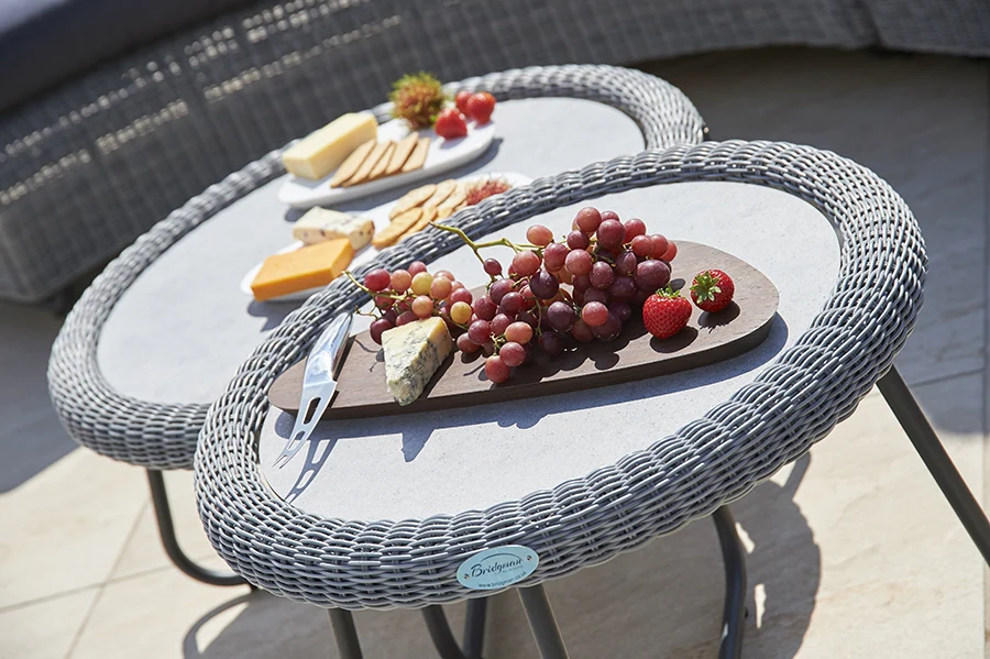 Perfect for lounging on hot summer days, this Cliveden lounging set has been expertly handwoven using our premium fully waterproof rattan in a chic shade of Pewter grey. Our exclusive 100% Waterproof Cushions in matching Grey provide added comfort and protection from food stains as well as red wine spillages while nylon feet on the sofa, side table and coffee table prevent scratching on patio stones so that you can relax worry-free.