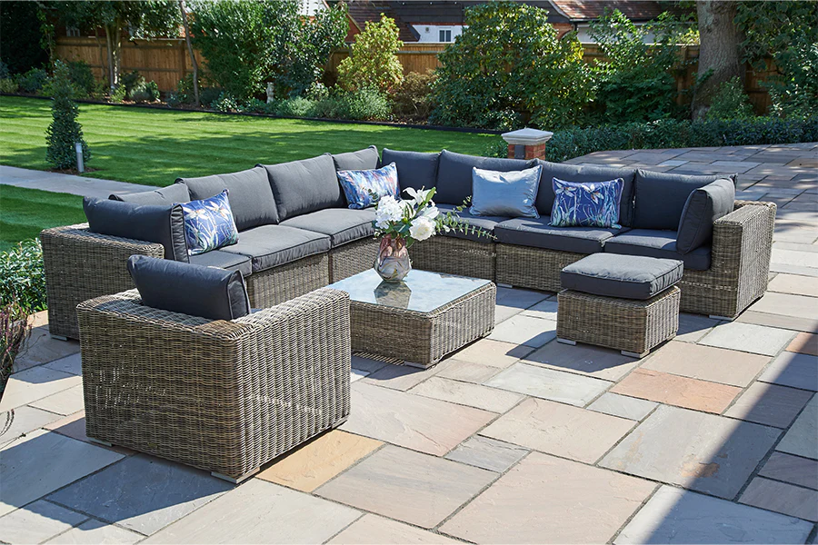 The missing piece to any outdoor lounging set, this versatile garden footstool provides brilliant value without compromising on design. The stool has been crafted using mild Olive Brown synthetic rattan that guarantees over 2,000 hours of sun resistance, and paired with a complementary cosy Grey or Beige cushion for added comfort.