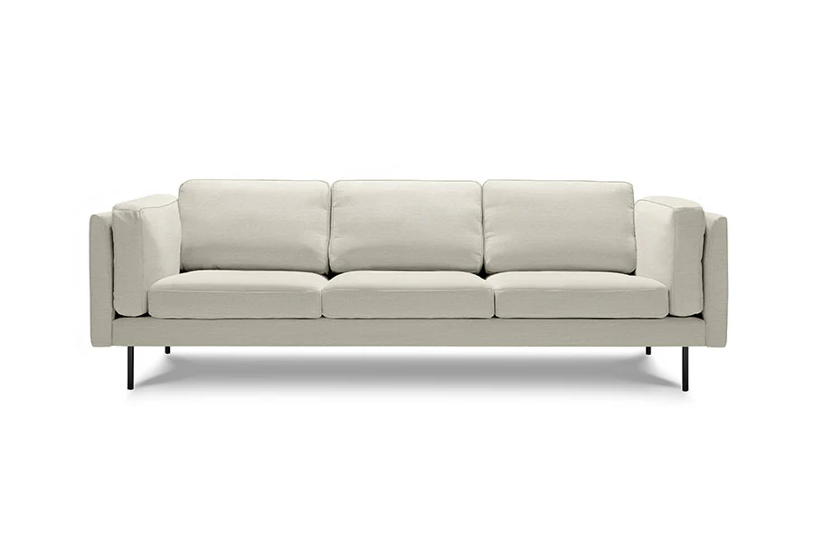 A beautiful blend of crisp, clean lines and sumptuous cushioning, this Sunbury Sofa is at once tailored and relaxed. While slender legs and a curved box frame maintain a sleek and stylish appearance, the sofa's generous seat, back and arm cushions ensure all-over comfort and a luxurious lounging experience every single time. The Atropa upholstery, a durable and warm chenille fabric, provides the sofa with a soft, thick and irresistible finish. Comfortably seating three to four people, this large sofa is ideal for contemporary living spaces.